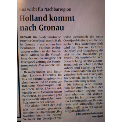 We zijn live met een uitgebreide SEA en socialcampagne voor onze landingspagina: https://www.das-andere-holland.de/overijssel. Het toeristisch en recreatief aanbod van onze partners staat deze weken extra in de schijnwerpers in de periode dat de Duitse buren extra vakantie hebben tijdens Frohleihnam en de zomervakantie. Met deze campagne zijn we top op mind bij de Duitse bezoeker/toerist uit de Duitse grensregio's voor een dagje, weekendje weg of vakantie.